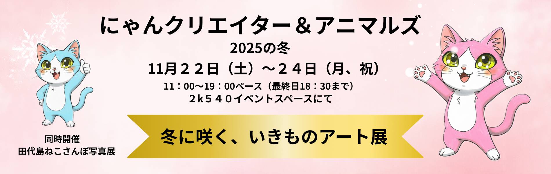 2022年11月29日 / 最終更新日時 : 2022年12月16日 wpmaster イベント 【終了】2022年12月3日(土)~4日(日)アート&グッズ展2022アニマルアートの冬 協賛:にゃんクリエイターズ® 【アニマルアートの冬】Tokyo Animal-Art Collection 開催決定 いきもの全般をテーマとしたものづくり作家によるアート&グッズ展 11:00~19:00(最終日18:30まで) 入場無料にて […]